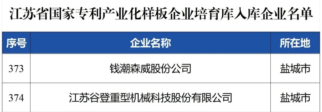江蘇谷登重型機(jī)械科技股份有限公司榮幸入選