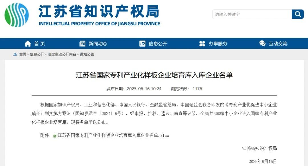 江蘇省國家專利產(chǎn)業(yè)化樣板企業(yè)